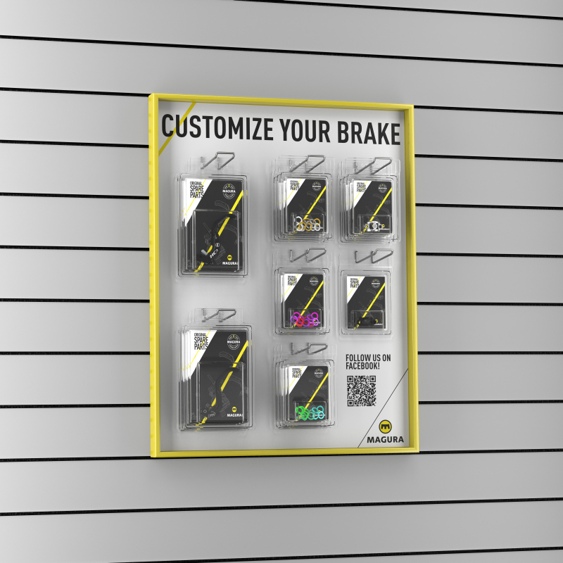 Présentoir "Custom your brake" support pour Slatwall et crochet inclus.